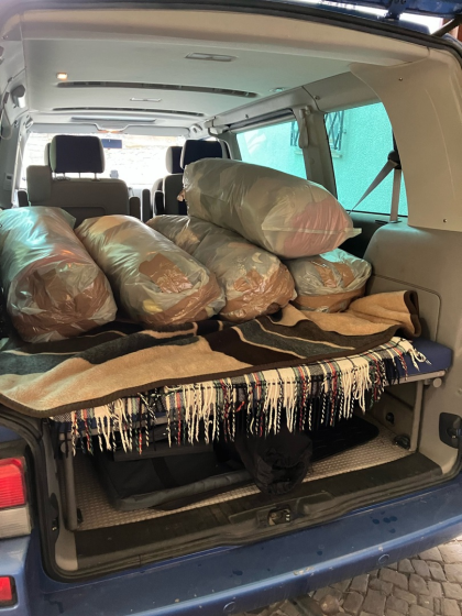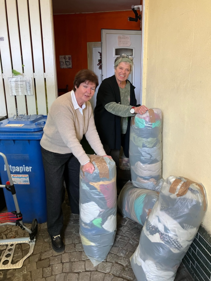 mehrere Säcke mit Ware abgeben, die in Weilmünster verladen und von "Zisterne" an die jeweiligen Einsatzorte transportiert werden - dorthin, wo es gilt, die Not unserer Mitmenschen zu lindern. Wir