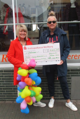 Ulrike Grün (l.) und Katja Keller von "Charity im Frauenzimmer" mit dem Spendenscheck